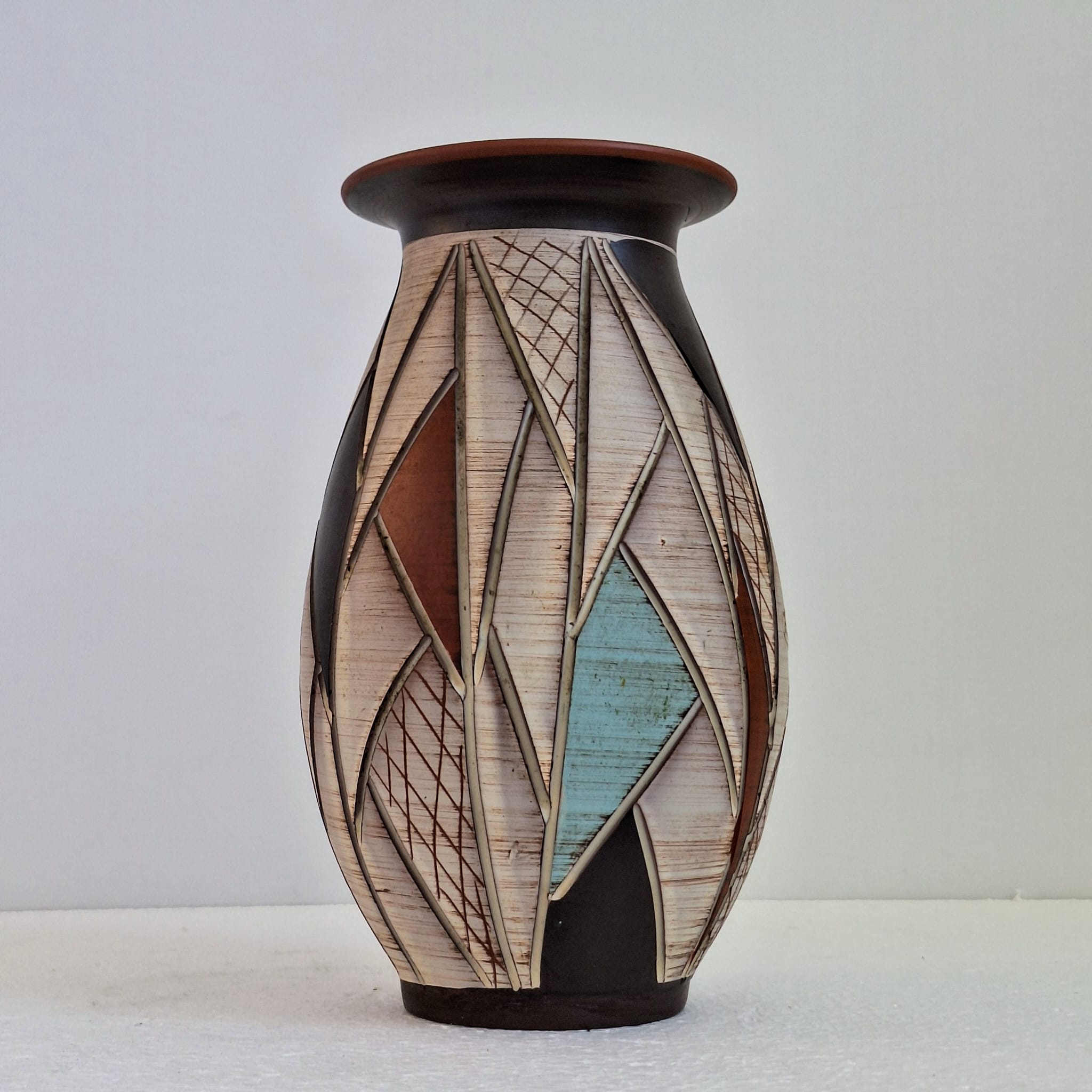 SAWA ceramic vase, conical, MCM, Sgraffito, design by Franz Schwaderlapp, WGP Germany, 1960s